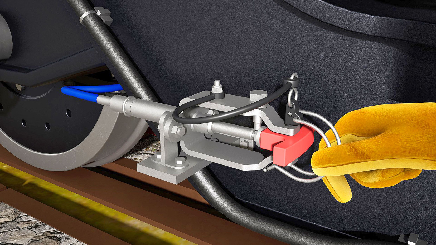 Another area of application for power-transmitting cable systems from RINGSPANN RCS is the routine repair and safety inspection of wagon bogies. In this case, it is a 278-V type remote control that acts as a mechanical emergency release cable for the parking brakes. It is needed so that the parking brakes, which work automatically in normal operation, can be opened manually for service purposes and shunting in workshop mode. "To ensure that this is done safely and easily, the pull cable can be equipped optionally with an integrated spring reset and a matching T-handle," explains Robert Lacko. Thanks to its high flexibility, the 278-V remote control system was also very easy to integrate into the existing disc brake design of the bogie. The short idle stroke also proved to be an advantage.