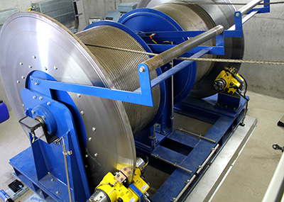 The system components of the new shuttle car system now in operation include, alongside the open cars, the 200-metre-long railway line, an upper and a lower station as well as a technical command post. Part of the uphill station is a winch drive system with two rope winches and a brake system. (Image: Wiegand)